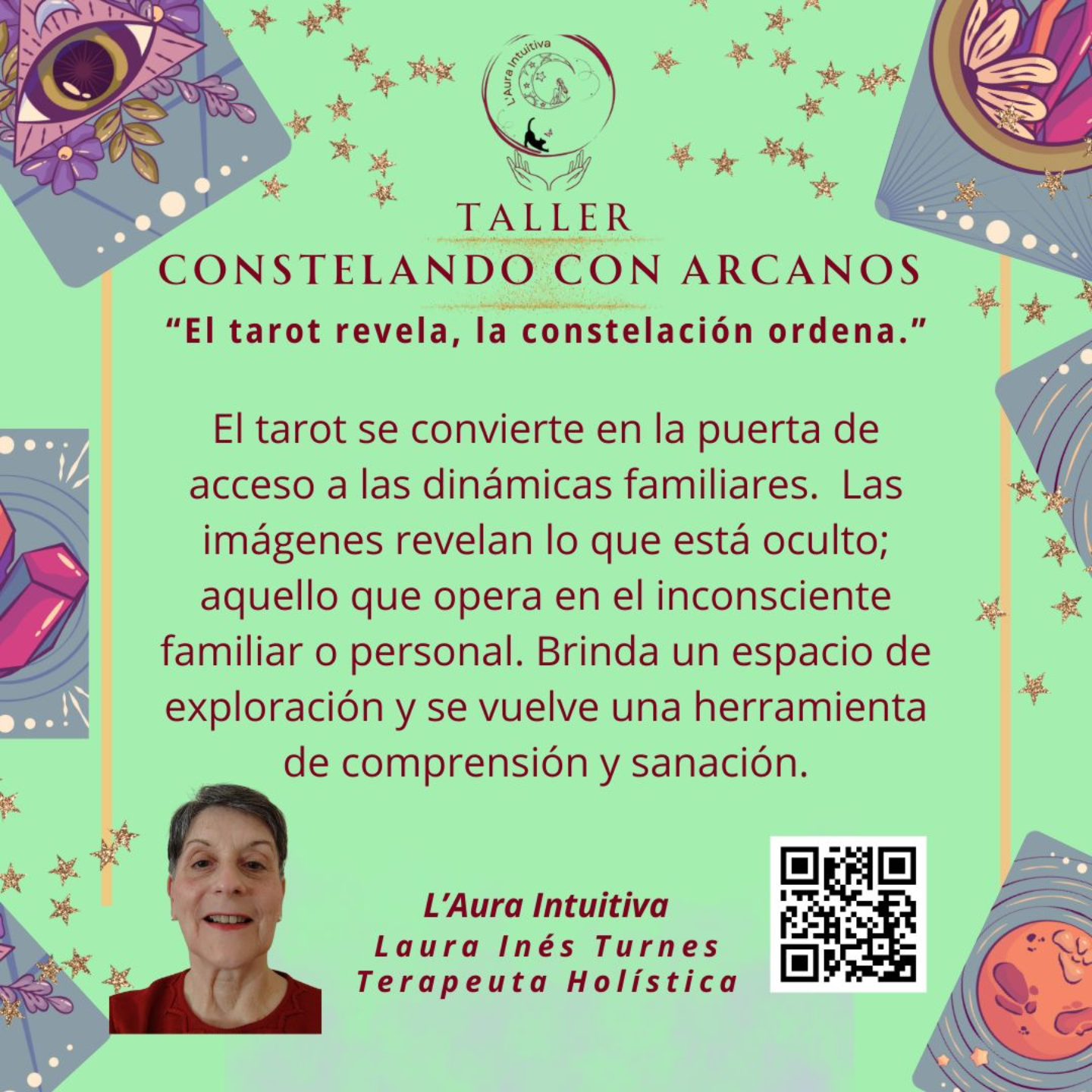 Un proceso de 8 clases donde, a través de los Arcanos y las Constelaciones, exploramos vínculos, emociones y patrones inconscientes para generar comprensión, sanación y transformación personal.